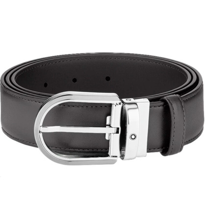 Кожаный ремень с пряжкой в форме подковы серого цвета 35 мм от магазина премиальных ручек Premium Pens в Новосибирске.